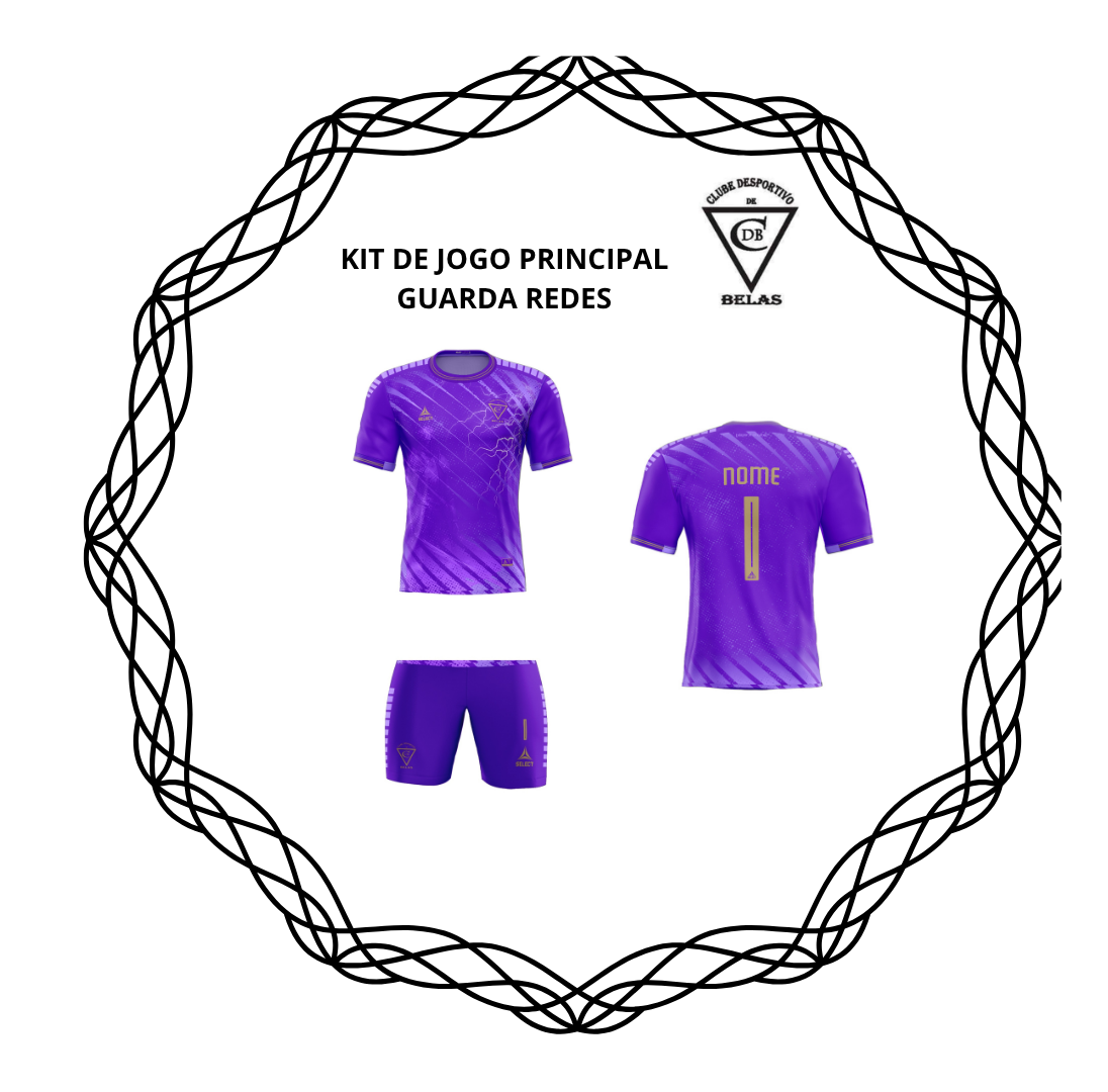 Kit de Jogo Principal de Guarda - Redes: Camisola Manga Curta, Calção e Meias roxas.